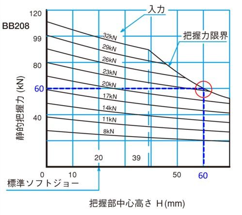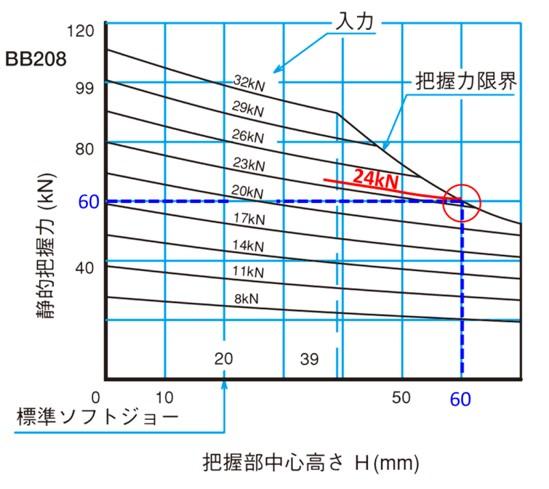 図の例ではBB208で把握部中心高さが60mm、必要静的把握力が60kNのときには入力24kNとなる。
