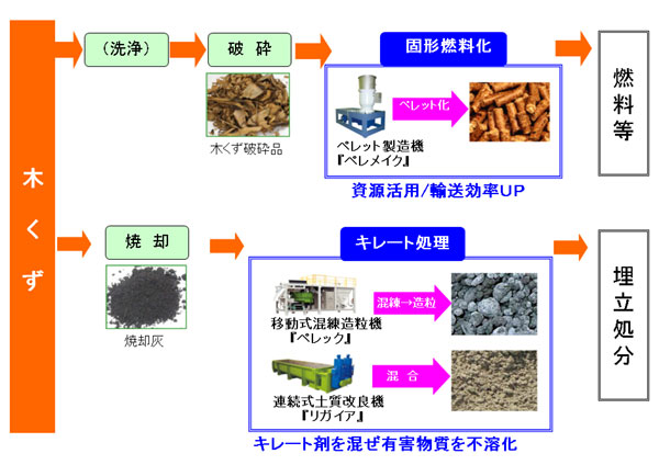 廃材などの木質チップをはじめ、あらゆる分野から発生する材料をペレット化・・・固形燃料に!