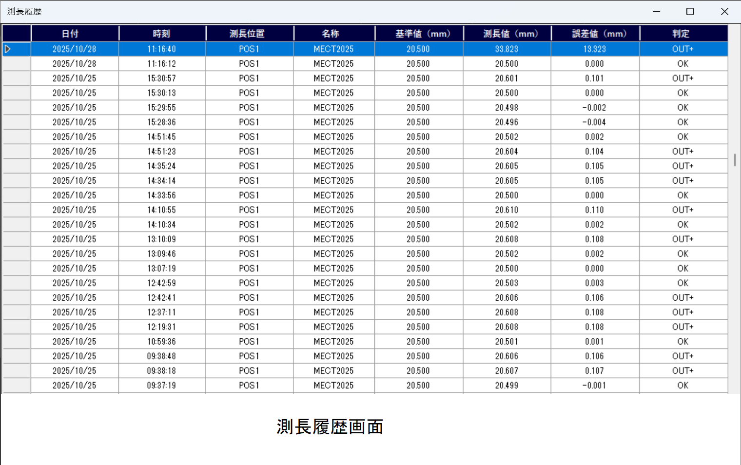 | ER2_USB_CXN | USBデータ出力失敗 (USBメモリ未接続) | 測長値 (mm) | |