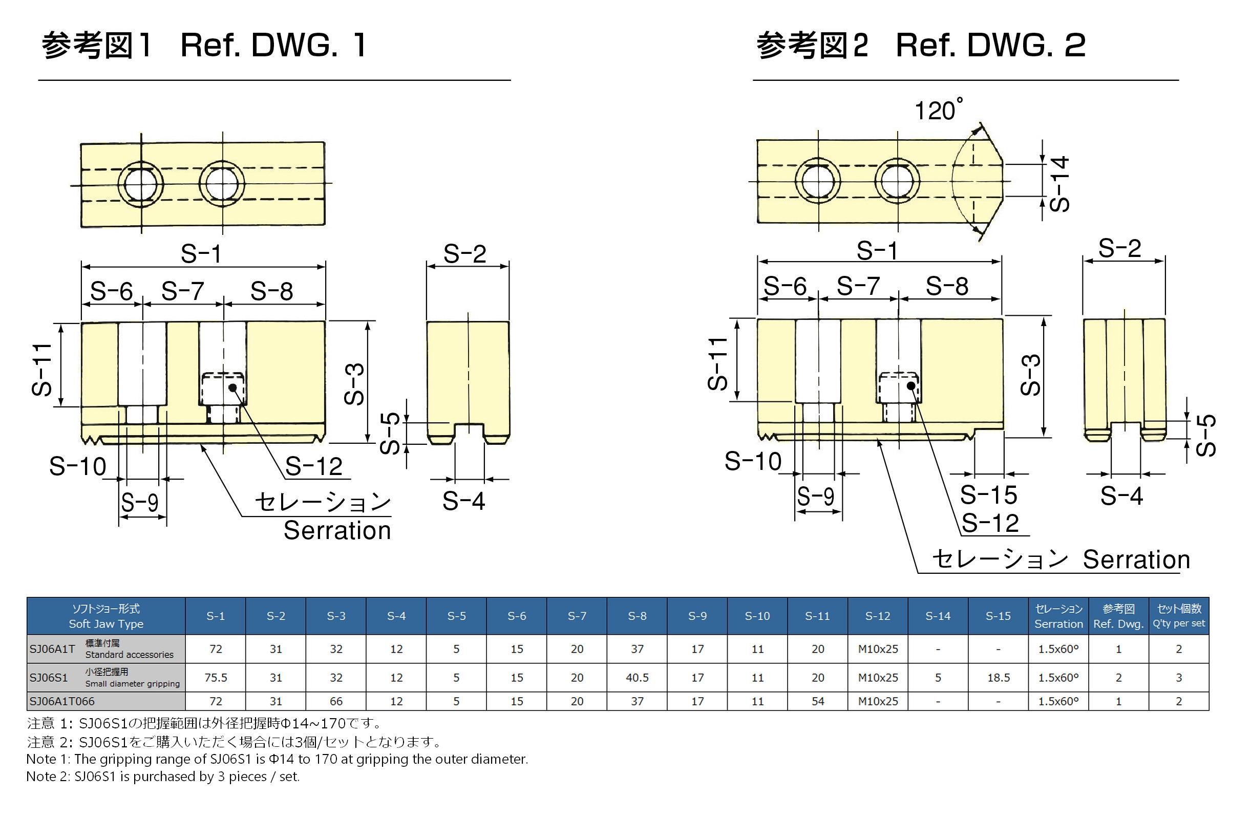 注1) 把握精度とはテストバーが把握できるようジョーを機上で成形加工した状態でのテストバーの振れ量です。