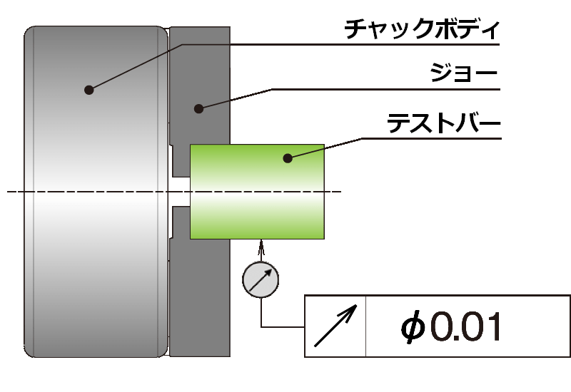 ジョー脱着後の把握精度が0.01mm T.I.R.以下となります。注1)