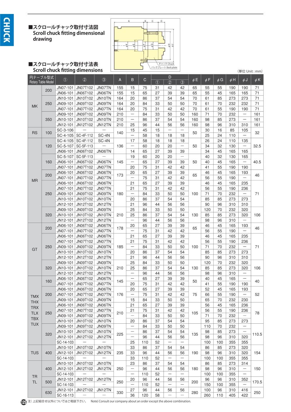 NC円テーブル用の前面取り付けタイプのスクロールチャックの詳細はこちらをクリックしてご参照下さい。