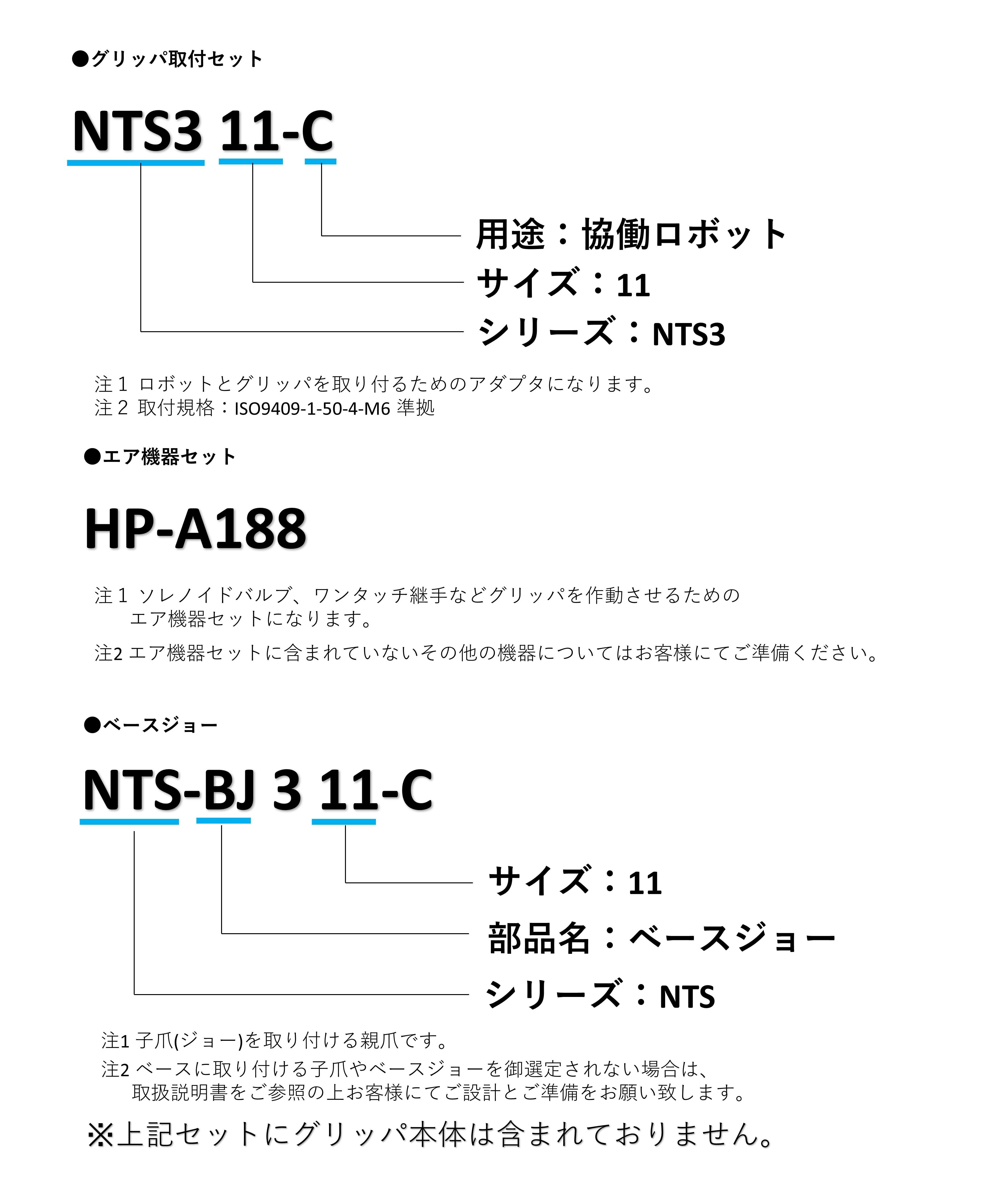 ロボットハンドの取付けに必要な周辺機器(アダプタ、エア機器、ジョー)がセットになっており、機器選定の手間を削減