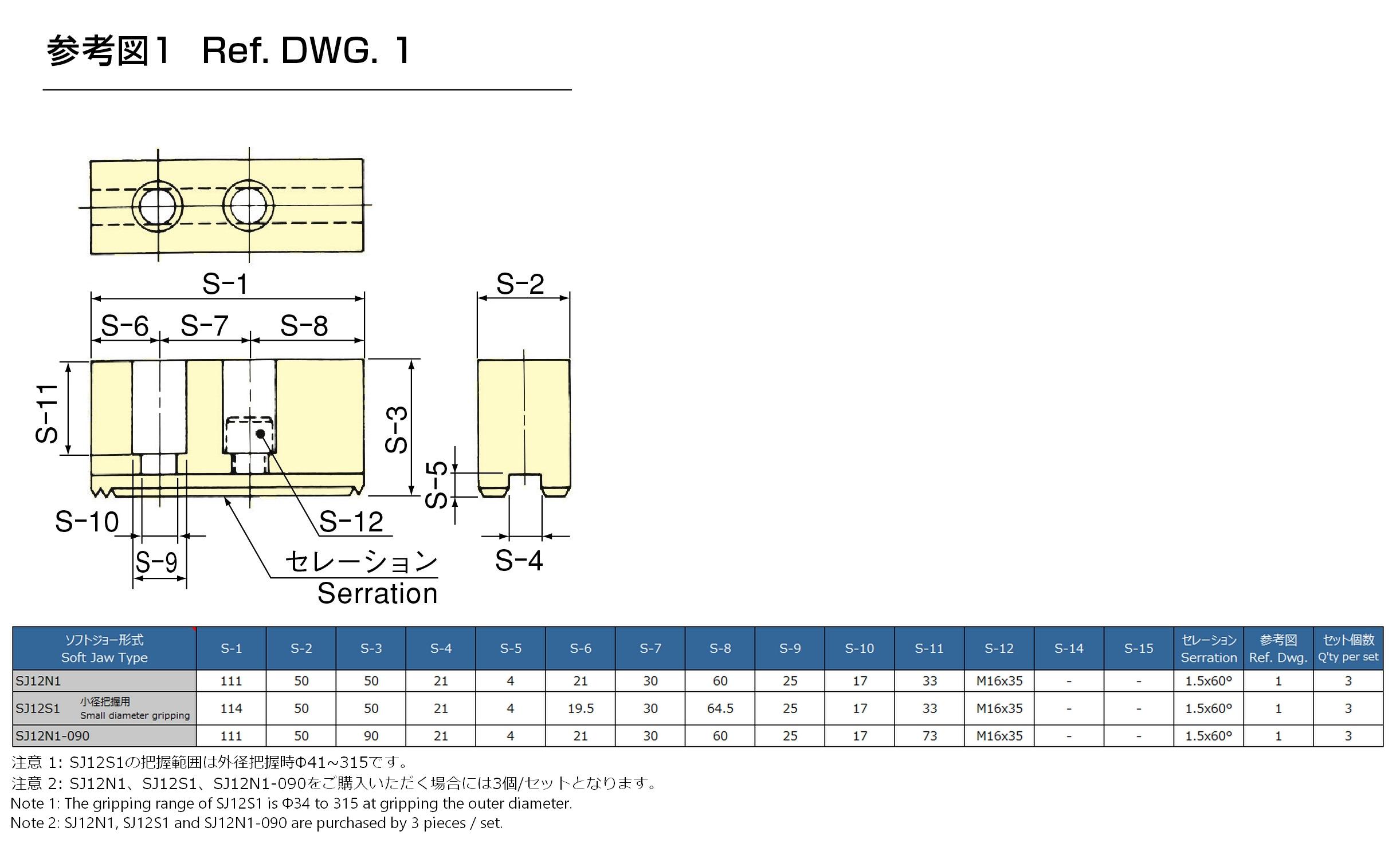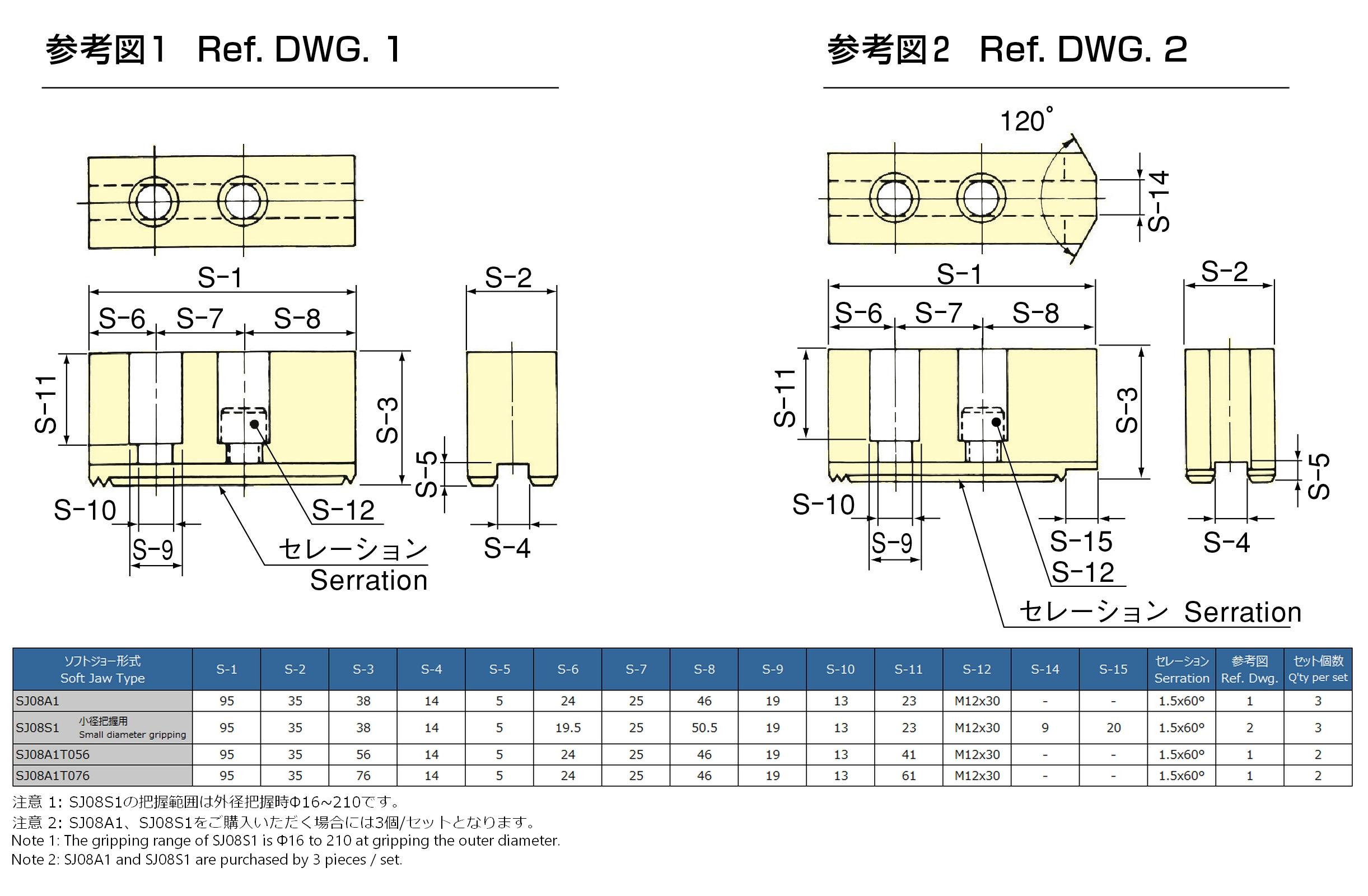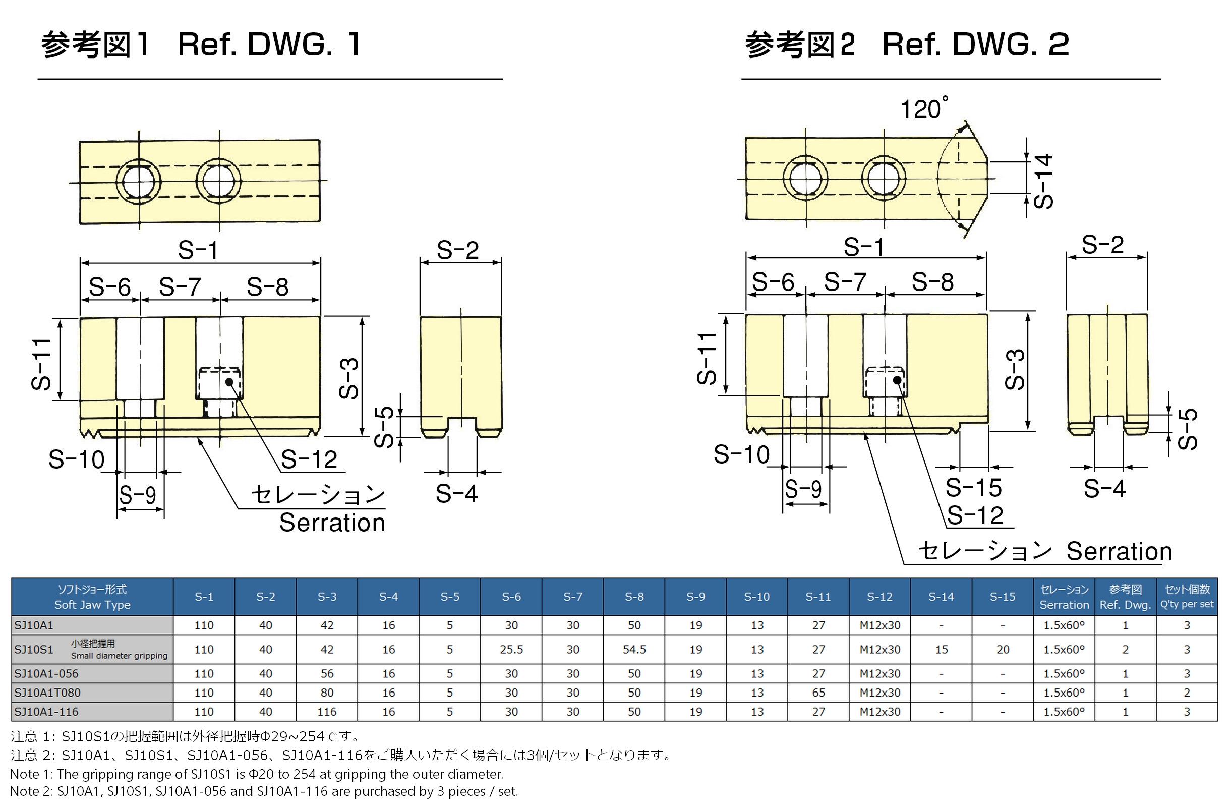 ※オプションジョーの型式について・・・例:SJ06A1-066の場合、ハイフン後の3桁が爪の高さを表します。( -066 = 高さ66㎜)※各型式をクリックするとソフトジョーの寸法が確認できます。
