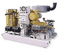 「ハスキー」ポンプには、205馬力ディーゼルエンジン駆動の S-200型と150馬力3相交流モーター駆動のE-150型があります。 どちらも最高圧力276MPa(2,800kgf/cm2)の超高圧水を安定して 吐出し、その性能と信頼性は既に市場で実証されている世界最高 水準のポンプです。