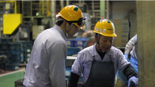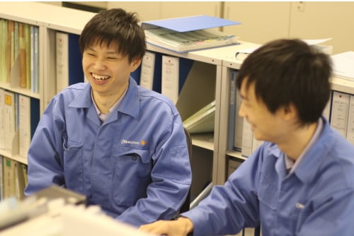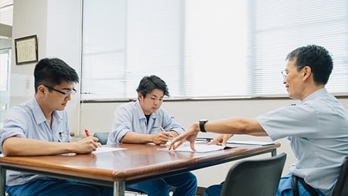 本配属を見越して所属する事業部門を中心に、個人に合わせた研修を実施します。より広く深く「ものづくり」の知識を身につけるため、製造現場ラインに入って作業をしたり、営業担当に同行し、お客様を訪問したりと、実務に近い実習経験から基礎知識・能力を養います。